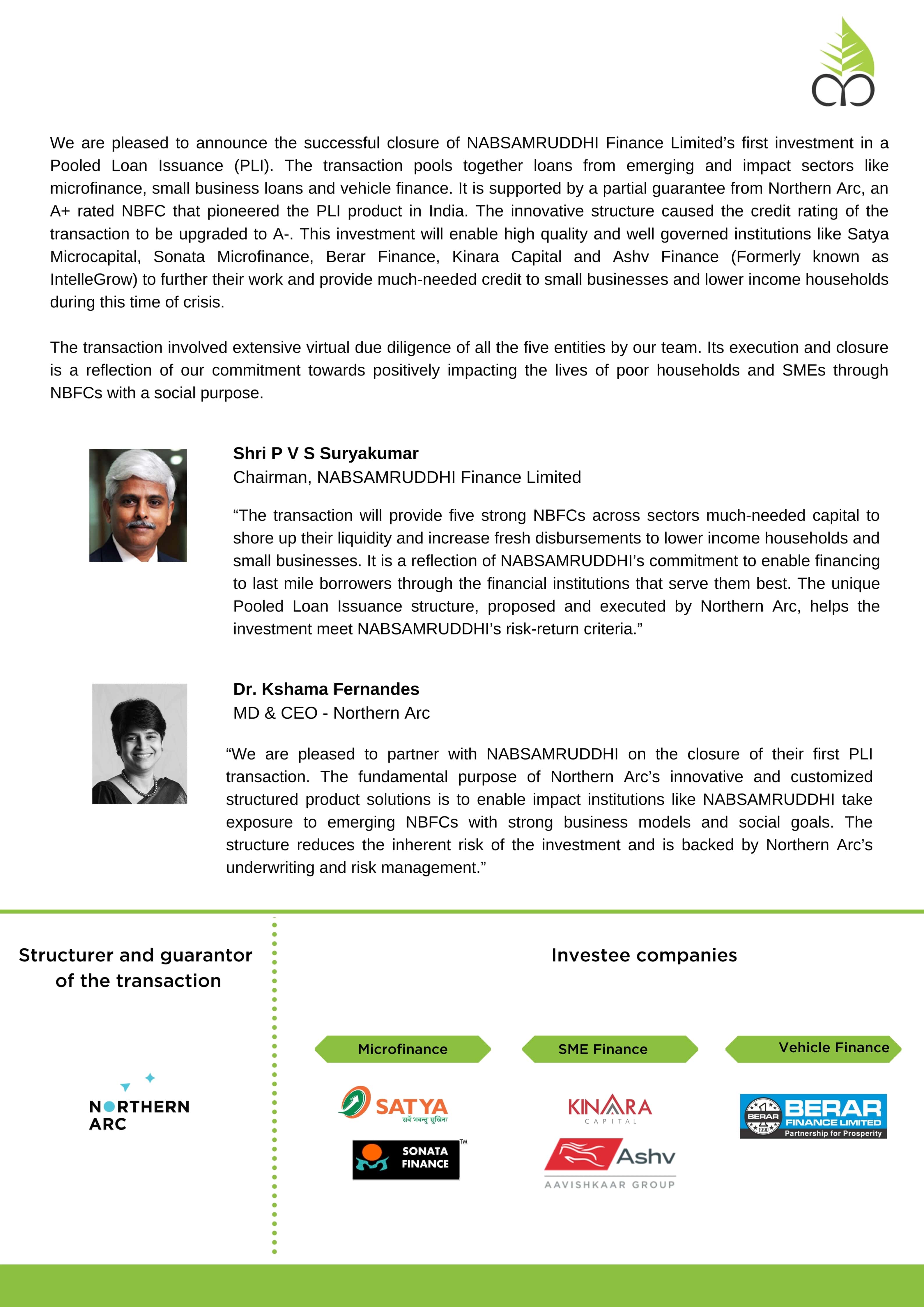 - NABSAMRUDDHI Finance Limited’s first investment in a Pooled Loan Issuance (PLI)